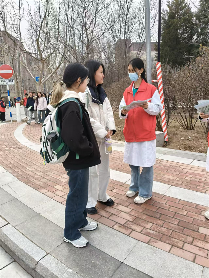 笔者 (红马甲,右一)在山西医科大学校区为师生发放宁养宣传册