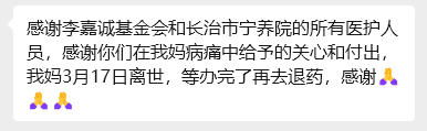 未来的日子里,这份“有情有爱”的羁绊仍会延续。长治宁养院会继续带着专业与温度,守好生命最后的驿站,也会珍惜每一份来自家属的认可与反馈。愿这份温暖能传递给更多人,让更多人知晓安宁疗护的意义,让每一段生命的归途,都能被温柔以待。