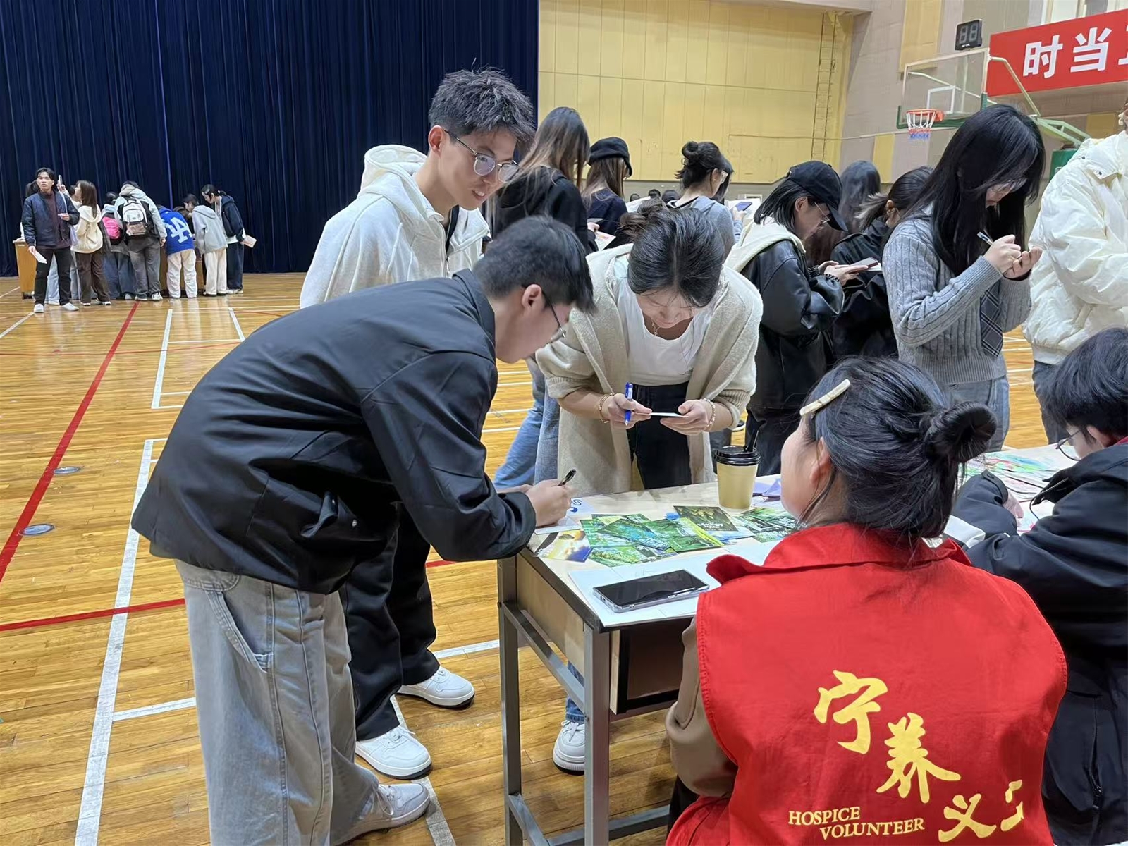 2025年11月9日,作为协办方,我们在西安交通大学学校社团指导中心开展的“暖冬拾趣”活动现场布置起宣传宁养服务的展台。作为宁养义工,我们希望能够通过这个小小的展台,向同学们宣传宁养服务。我们为它取了一个温暖而特别的名字:“三行情书,温暖信笺站”。我们告诉同学们,寒风起时,正有一群特别的人,在以巨大的勇气面对疾病与疼痛。同学们可以在一张明信片上,为正在经受癌痛的他们,写下一段鼓励的话语,或许是关于坚强的点赞,或许是一份安静的祝福。