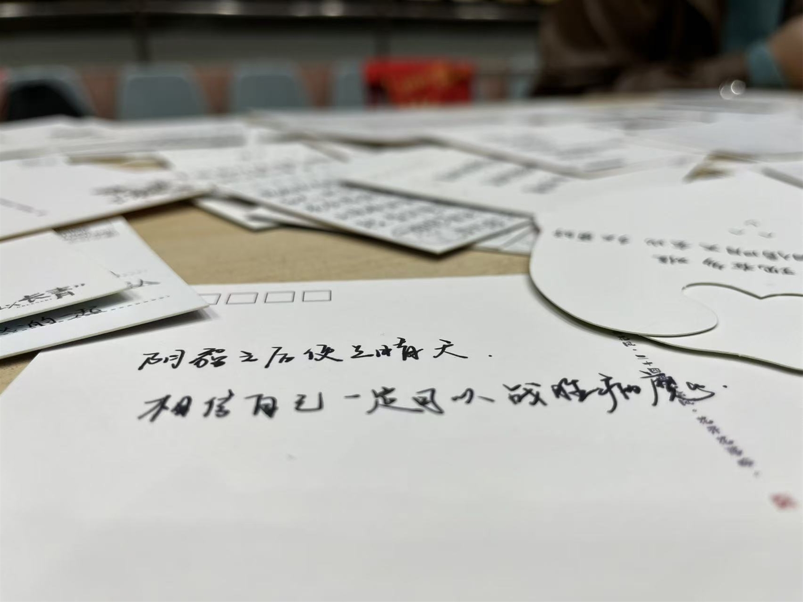 这些年轻的手写下的不只是文字,而是具体的关怀。我负责整理明信片,手指触摸到那些笔迹,仿佛能感受到书写者掌心温度。有的字迹工整如印刷体,有的歪歪扭扭却一笔一画极为认真,还有的画了可爱的小图案。每一张都如此不同,却又如此相同,它们都在说:“我看见了你的疼痛,我在这里。”