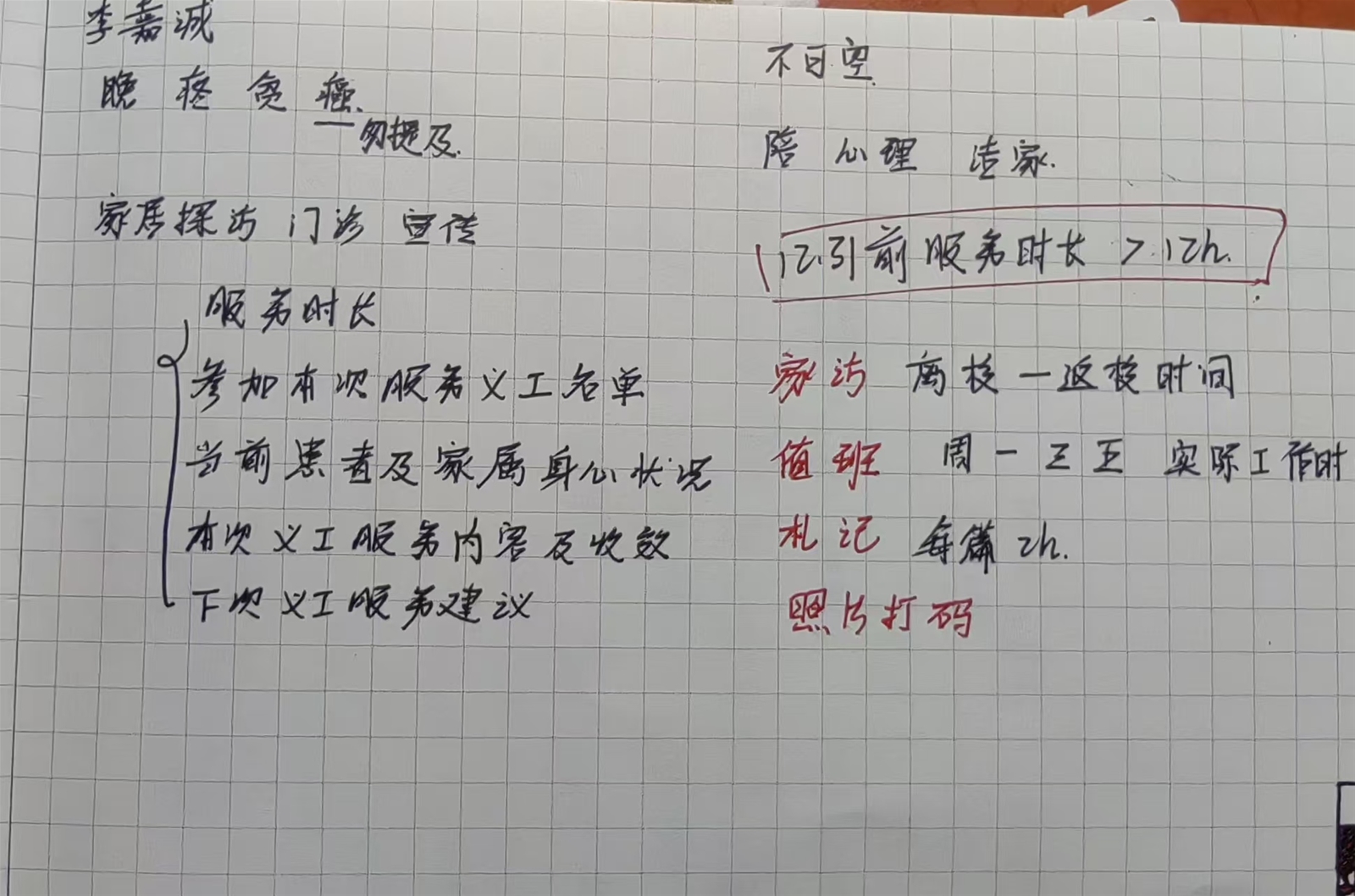 笔者在义工培训时记下来的笔记 (部分)