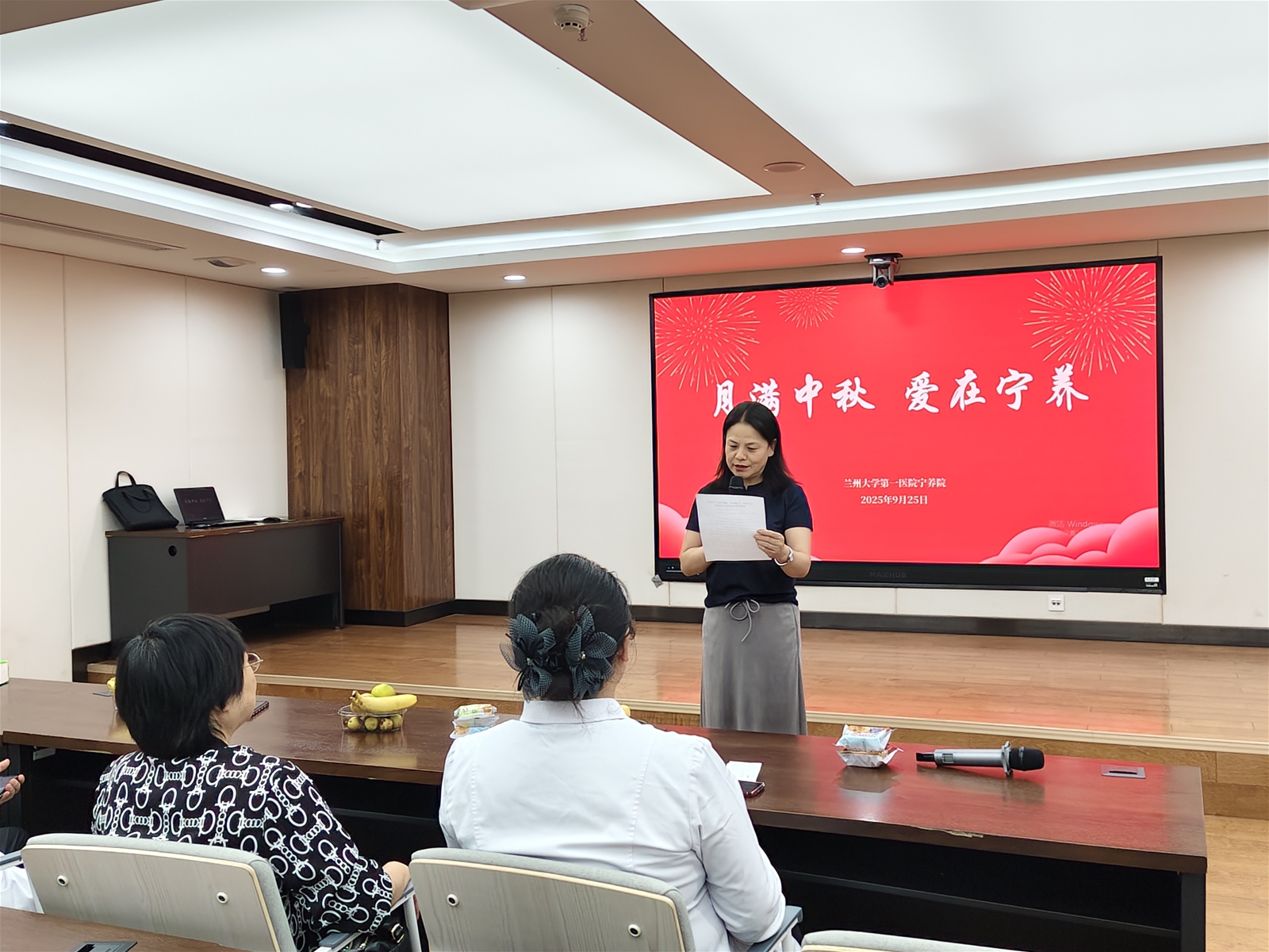 2025年9月25日,兰州大学第一医院宁养院在门诊综合楼五楼会议室举办了“月满中秋 爱在宁养”贫困晚期癌患者家属中秋节关爱主题活动。患者家属、宁养院工作人员和宁养志愿者 (义工) 共50余人参加。