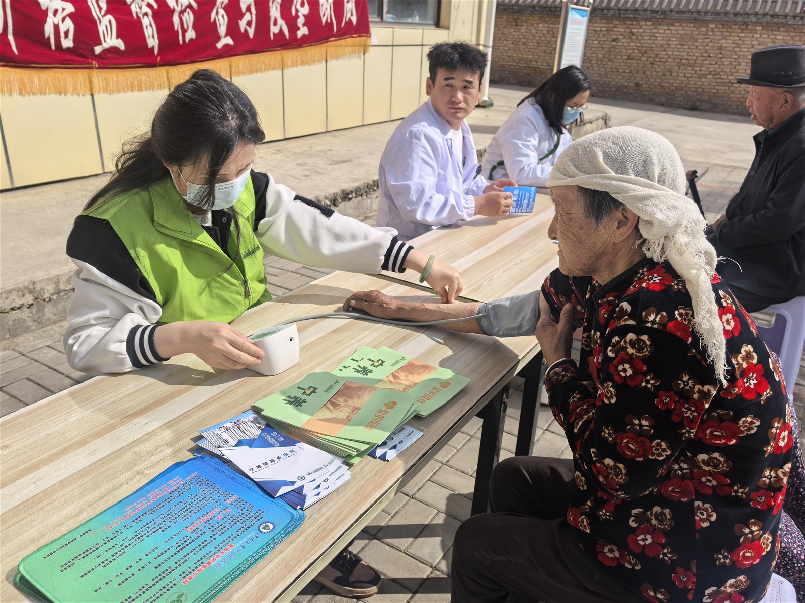 活动当天,青海大学附属医院的义诊队伍成员有内分泌科马生花副主任医师、全科医学科杜明亭医生、心电图室马小聘医生、宁养院吴欢医生和赵隆香社工。义诊处位于文化广场,而宁养服务指导区设为核心区域,与健康问诊区、健康宣教区形成联动,精准聚焦乡村老人“急难愁盼”的健康问题,尤其是关于癌症晚期疼痛患者的居家照护需求。