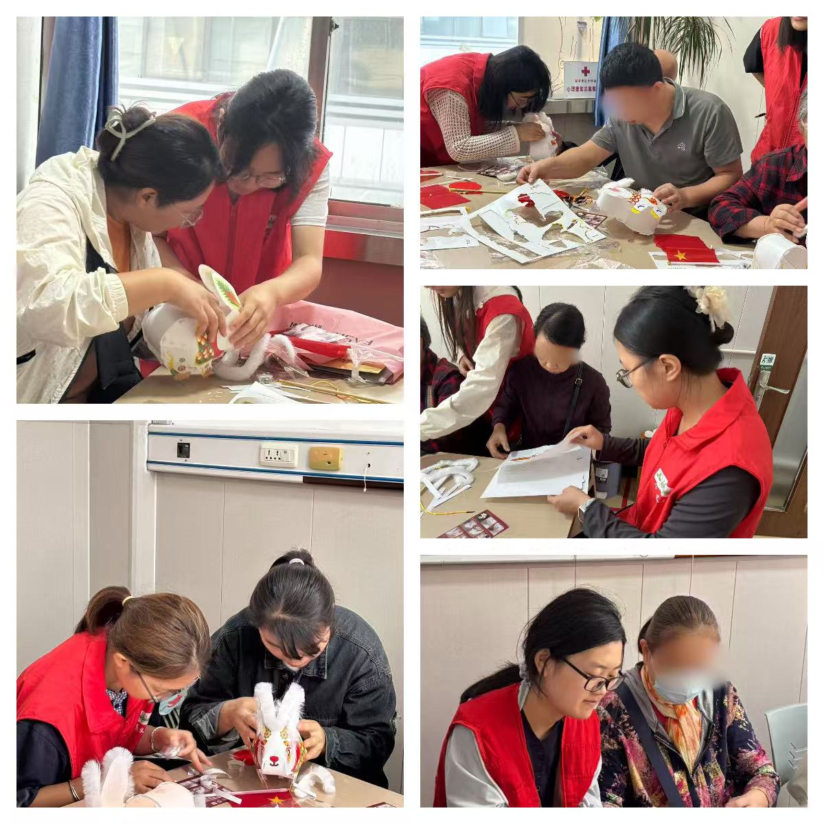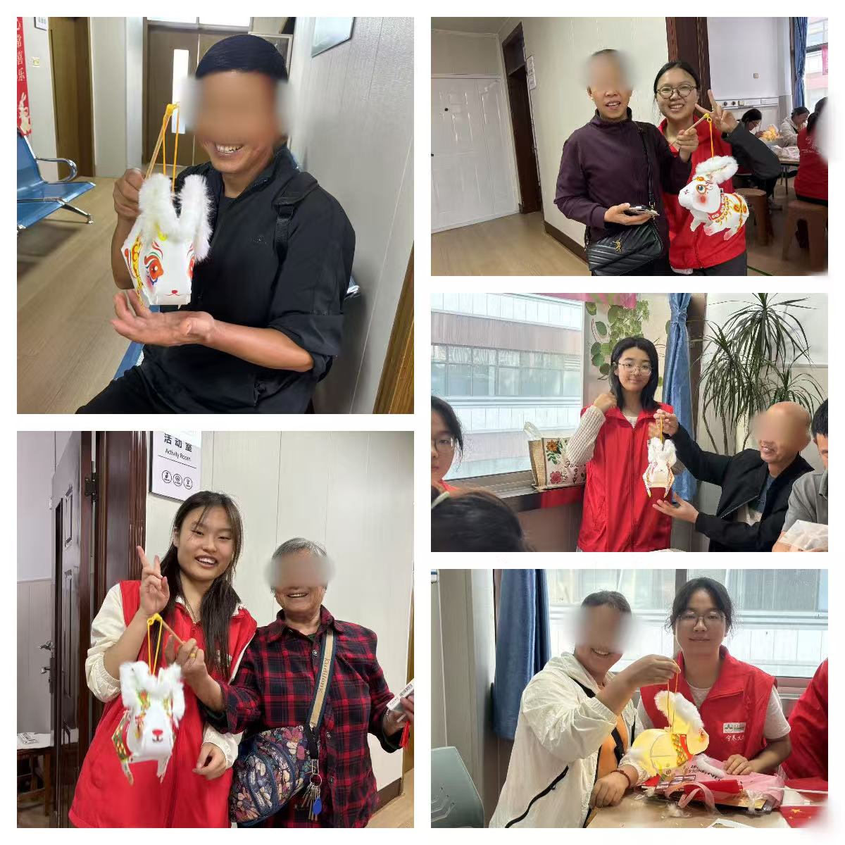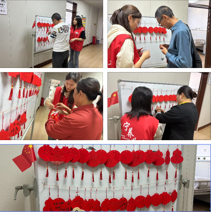 DIY手工环节成为活动的暖心高潮。宁养院特别准备了20份兔子中秋灯笼材料包,家属们热情高涨、争相参与,专注于在灯笼上绘制双节图案、书写对患者的心愿,同时将给自己的鼓励话语挂在“加油白板”,家属们写下专属自己的暖心打气语,并附上宁养院病历号——这份特殊的“印记”,将在后续取药时再次提醒他们“记得肯定自己的付出”。有位家属即便多次被提醒取药,仍沉浸在手工创作中,这份对当下温暖的专注,打动了在场所有人。
