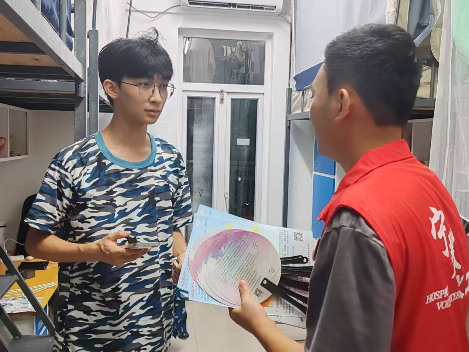 活动前期队伍通过线上公众号推文、线下扫楼宣传双管齐下,宁养义工们走进各宿舍楼派发传单,细致讲解宁养院服务宗旨与服务队日常服务内容,耐心解答学生疑问,让“用爱陪伴生命”的宁养理念深入人心,吸引了约50名对宁养满怀热忱的同学前来报名。