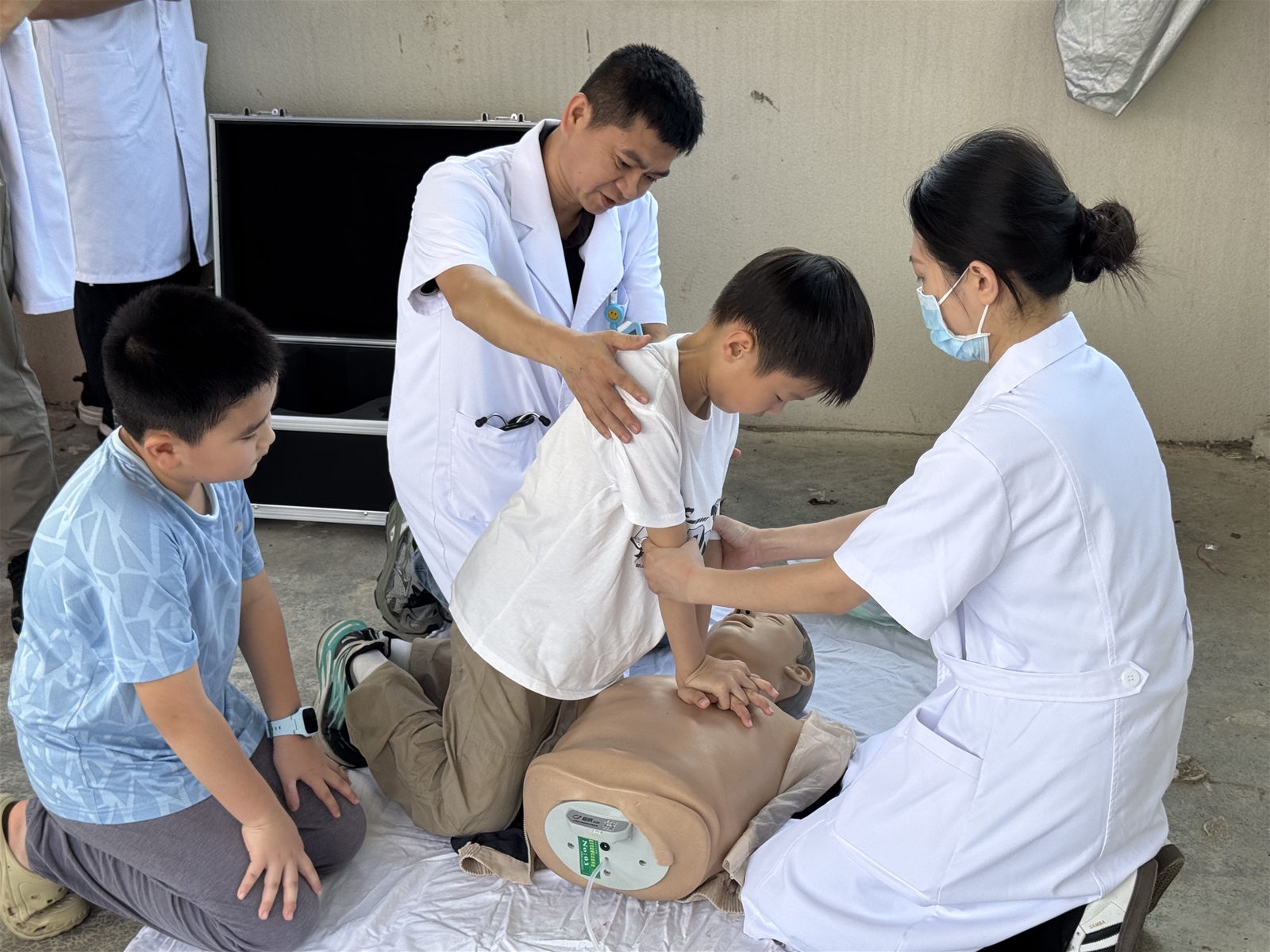 这次义诊活动参与的科室有心血管内科、皮肤科、眼科、中医科、宁养院等。现场,心血管内科的医生及护士为群众普及心脏健康的重要性、常见心脏疾病、保护心脏健康的建议,指导心肺复苏的要领和操作技巧,解答心梗的防治及存在的认识误区,并现场演示心肺复苏。群众通过听、学、模拟演示、实地操作,初步掌握了如何判断心脏骤停,规范的胸外按压及有效的人工通气等,气氛热烈。义诊团队免费发放针对性药品。而宁养院医护人员为来咨询的群众解答癌症及止痛药的相关知识,介绍宁养院及宁养医疗服务,发放宣传资料等。