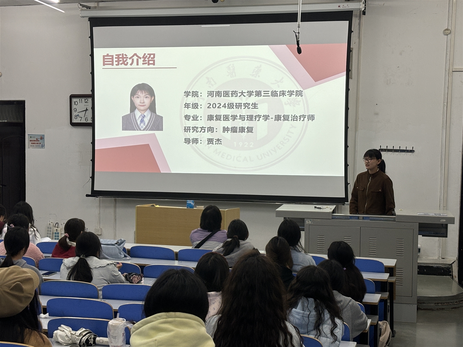 此次培训还特别邀请了在新乡宁养院跟随学习的康复专业研究生耿怡萌同学参与分享。耿同学结合自身专业知识与实践经历,详细讲解了在安宁疗护中康复师的角色定位与核心任务;康复师可为患者提供身体功能评估和协助患者维持基本生活能力等。