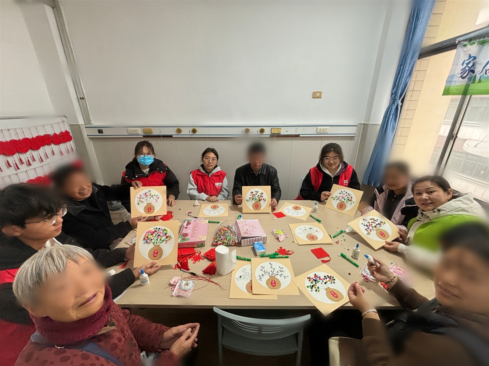活动现场,“DIY 暖心卡片”环节率先拉开帷幕。家属们可自主挑选象征温暖的彩色毛毛球,搭配心仪的图画,为卡片添加叶片装饰。柔软的毛毛球传递着治愈力量,也让家属在动手过程中逐渐放松心情,借由色彩与图案悄然流露内心的情感与期待。