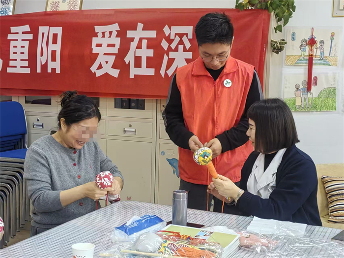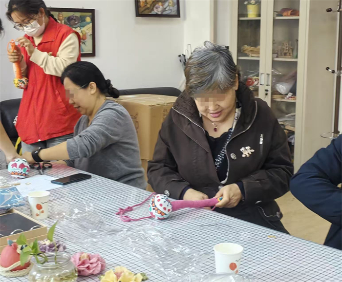 艾草锤制作环节成为整场活动的“暖心高潮”。在义工们的耐心协助与专业指导下,家属们手持布料、艾草等材料,专注裁剪、细心填充、认真缝制,将对家人的牵挂与祝福融入每一针线。制作过程中,大家不时交流手工技巧、分享生活趣事,活动室里的欢声笑语取代了往日的焦虑,满是温馨与治愈。据悉,艾草锤兼具活血化瘀、温经散寒、缓解疲劳的功效,这份亲手制作的礼物,既是舒缓压力的“解压神器”,更成为传递亲情与温情的特殊载体。作品完成后,主持人逐一点评鼓励,让每位参与者都收获了满满的成就感。