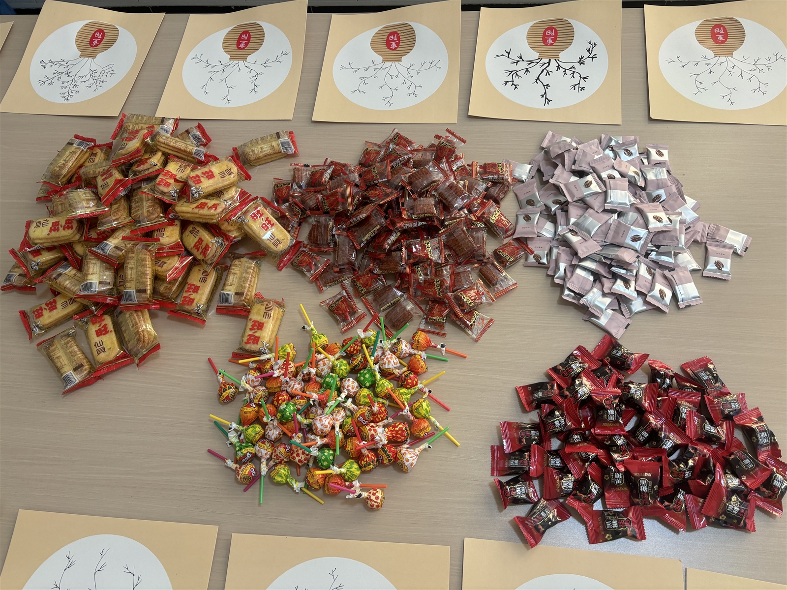 在出发前,宁养院社工特意为新义工布置了一项特殊任务:每位同学在徒步时需捡拾一片绿叶和一片黄叶,这一任务引发了义工们的强烈好奇与期待。当义工们顺利抵达终点宁养院,看见宁养院的桌子上早已摆放好五样小零食——话梅糖、巧克力、棒棒糖、辣条和雪饼。在社工的引导下,每位义工领取自己心仪的零食,随后,在分享环节中社工邀请义工们畅谈他们对 “绿叶、黄叶”以及“五样小零食”背后的意义。