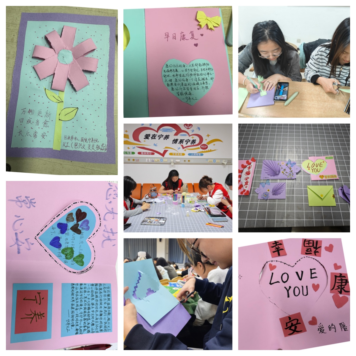 在活动筹备与开展过程中,义工们充分利用业余时间,倾注热情与巧思,将内心的感恩与祝福转化为一件件有形而动人的作品。他们精心挑选材料,巧妙设计构图,用心书写寄语,制作出了一张张情真意切、别具匠心的手工贺卡。这些作品不仅在外观上体现了构图的美感与排版的合理性,更深层次地承载了宁养团队厚重而真挚的情感。其中,一部分贺卡集中表达了宁养团队对李嘉诚先生持之以恒、慷慨支持宁养事业的深深谢意与美好祝愿,字里行间充满了敬意与感恩,另一部分贺卡则聚焦于患者及家属,书写了众多温馨的鼓励话语与真挚的祝福,期望能借此为他们注入力量,传递宁养团队不离不弃的陪伴温暖。