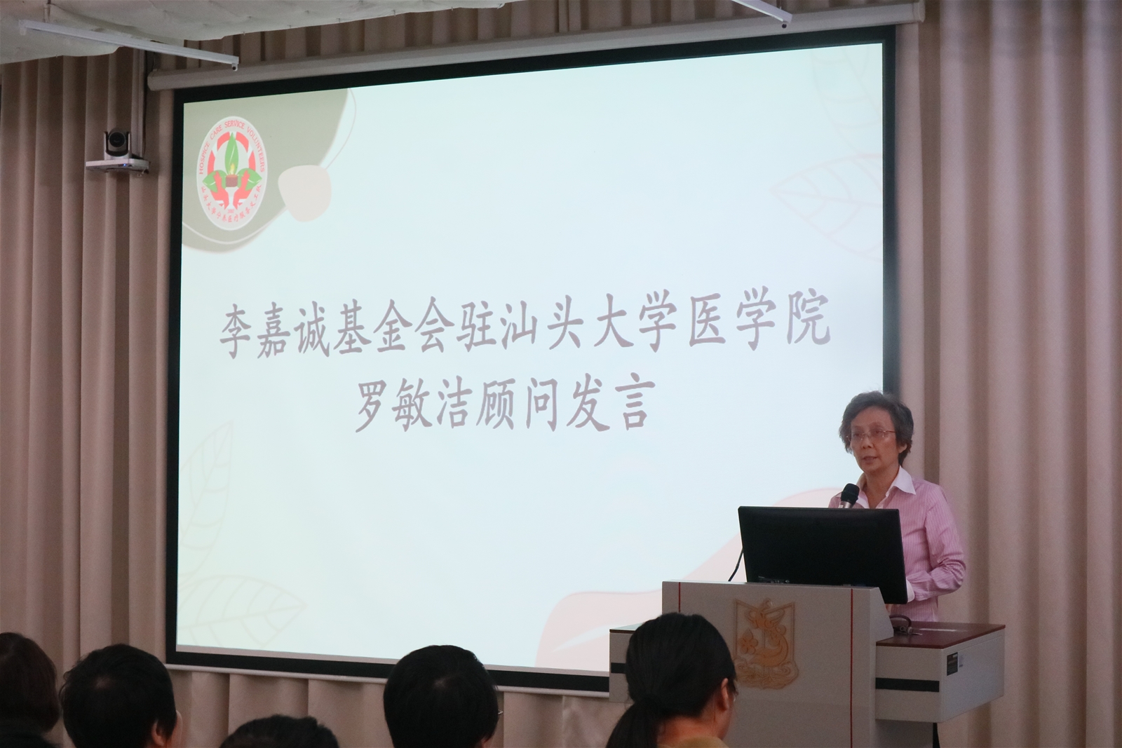 罗敏洁医生首先在会上发言。她回顾了汕头大学宁养医疗服务义工队作为全国首支服务宁养患者的大学生志愿团队二十四年的发展历程,并深情重温了李嘉诚先生到访汕头大学医学院老校区时为医学生们题赠“医德医术兼优,爱心奉献济世”的深切寄语。鼓励宁养义工们常怀关爱之心、践行医者誓言,在志愿服务中重视对患者的亲身陪伴,深刻体会“有时治愈,常常缓解,总是安慰”的医学人文内涵。