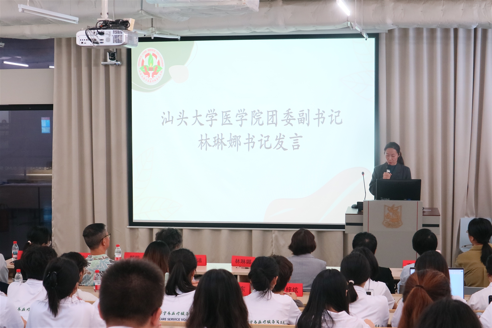 随后,林琳娜副书记代表共青团汕头大学医学院委员会进行发言,再度阐明“志愿服务是社会文明进步的重要标志,是广大志愿者奉献爱心的重要渠道”,鼓励医学生发挥专业能力,深耕宁养医疗服务领域,造福贫困晚期肿瘤患者家庭。林副书记对宁养义工队历届成员同心共护宁养服务对象的扎实工作基础及卓越服务成效表示肯定,并对新一届宁养义工提出殷切期望,鼓励大家既要精进医术、又要心怀同理,让每一次相聚陪伴都传递生命关爱生命的温暖力量。