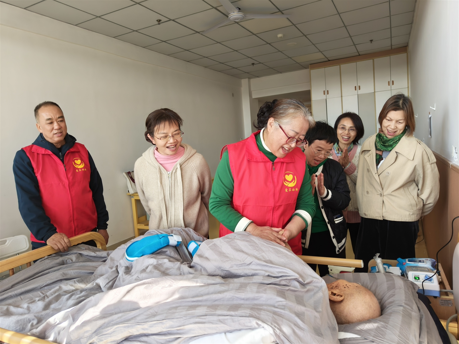 交流会后,大家来到月湖区医养中心,将刚刚探讨的理念与情感,化为具体的行动。走进老人们的房间,志愿者们自然地坐在老人们身旁,与他们促膝交谈,关心他们的饮食起居与身体状况,了解情感需求。志愿者们耐心倾听老人们讲述过往的峥嵘岁月,肯定老人们的人生价值,与他们一同唱起熟悉的经典老歌,那些承载着时代记忆的歌谣,仿佛一把钥匙,打开了老人们的心扉,他们的脸上绽放出久违的、孩童般的笑容。这一刻,歌声超越了语言,空气中弥漫着温馨的气息。