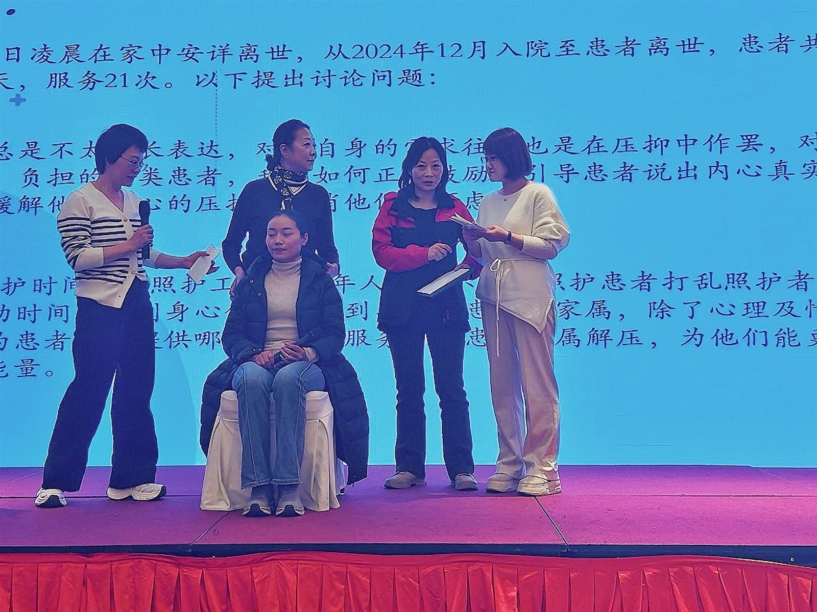 本次年终会议的业务培训环节,宁养院林菁主任受邀在医生分会场面向全国参会宁养医师同仁进行《CACA 安宁疗护指南与宁养服务》的理论与经验分享。李瑞娜护士长在护理培训专场上进行宁养服务个案汇报,并参与在该专场的分组情景扮演,其组别在情景扮演中取得最佳角色扮演奖。