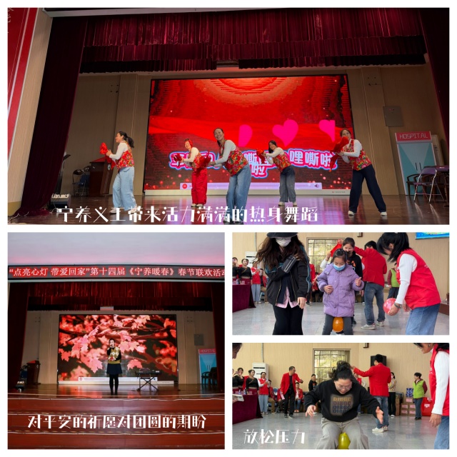 热身游戏《军民大生产》的开启,使现场氛围愈发热烈。宁养义工们身着富有东北大花袄的背心,带着满满的活力走上台,带领全场病友及家属们参与。“左四下,右四下,上四下,下四下,大家跟着动感的音乐一起动起来!”在义工的热情感召下,患者和家属们纷纷响应。简单的动作,默契的配合,让原本陌生的人们紧紧相连,彼此的距离在欢声笑语中悄然消融。一曲《小美满》悠扬婉转,歌声里满是对平安的祈愿、对团圆的期盼。台下,有人跟着旋律轻轻哼唱,有人紧紧握着身旁亲人的手,指尖传递着无声的慰藉。几位阿姨悄悄拭去眼角的湿润,嘴角却轻轻上扬起来。