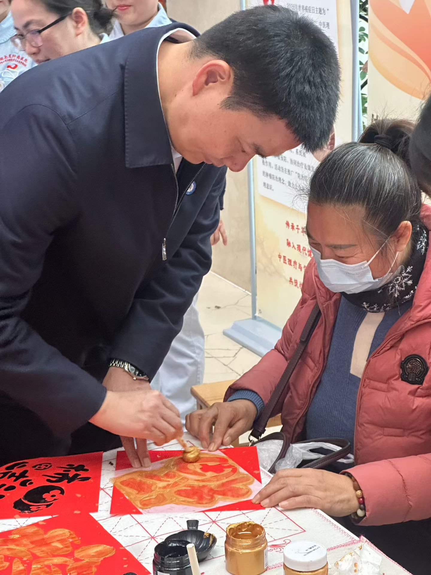 医院党委书记蔡宏坤来到活动现场,逐一走访各区域,与患者、家属及医护人员亲切交流、参与福字拓印、现场捐出善款以支持宁养公益事业,并对宁养服务的公益价值与人文意义予以肯定,鼓励团队持续为晚期癌症患者提供有温度、有尊严的照护支持。