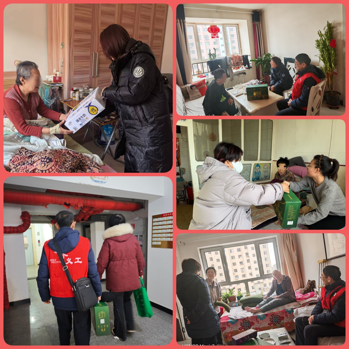 慰问过程中,这样感人的场景不断上演。东河区患者刘大爷曾是一名退伍军人,退役后,他主动扎根基层,默默奉献数十载。慰问过程中,医护人员为刘大爷细致检查了身体状况,更新了疼痛管理方案,叮嘱家属日常护理的注意事项。护师、社工、义工他们围在老人身边,听他讲述当年在战场上与战友并肩作战的热血往事,深受触动,纷纷为老人的坚守与奉献点赞。“刘大爷是国家的功臣,为国家和人民付出了太多,我们能做的就是让他在最后的时光里少些痛苦、多些温暖。”曹护师还特意叮嘱家属牛奶可加热后饮用,搭配清淡饮食更易吸收;义工张大哥主动询问刘大爷在生活中的需求与诉求并详细记录,同时,表示下次带退伍军人义工陪伴患者。不知不觉间,半个多小时过去了。刘大爷脸上的笑容始终没有褪去,话也比平时多了不少。临走时,他紧紧握着我们的手说:“谢谢你们来看我,还陪我聊了这么久,今天心里真痛快!”张海霞社工道:“刘大爷,我们会常来看您的,祝您新春快乐,阖家幸福!”
