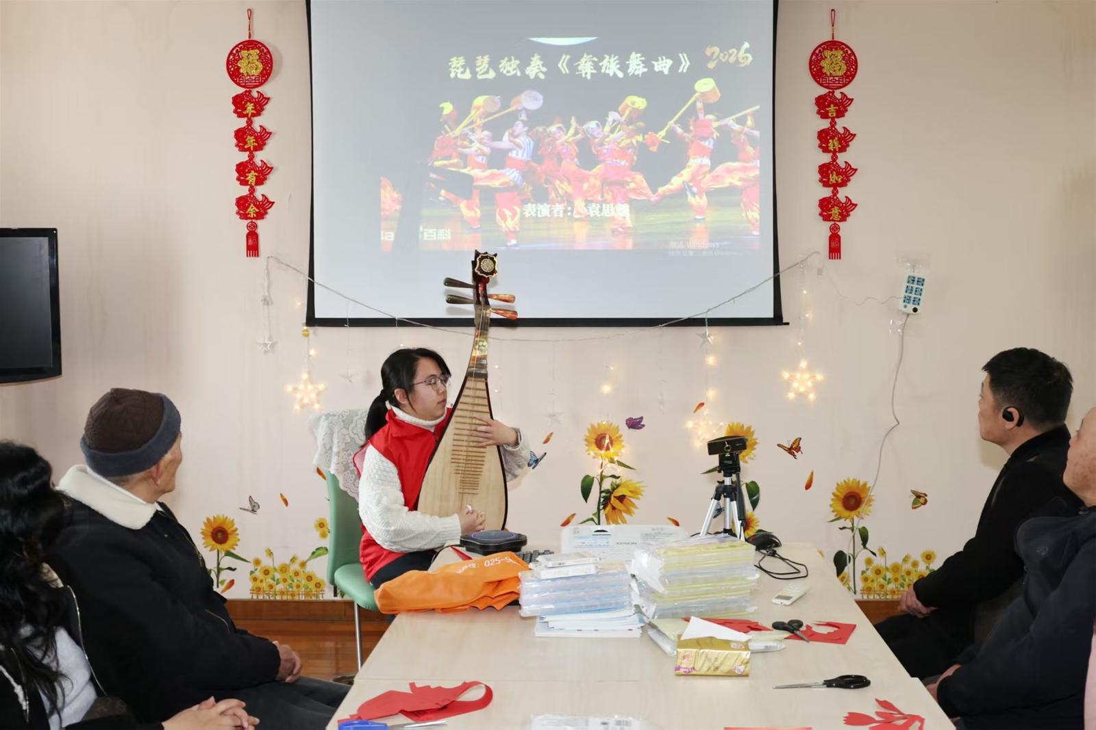 欢快的手势舞《福气要来到》点燃全场热情,家属与志愿者携手共舞,笑靥如花。大学生志愿者刘佳雯演绎的独舞《女儿心如水》柔美灵动,袁思懿同学琵琶独奏《彝族舞曲》婉转悠扬。跃动的身影与流淌的旋律交织成希望的乐章,为在场者注入蓬勃生机。