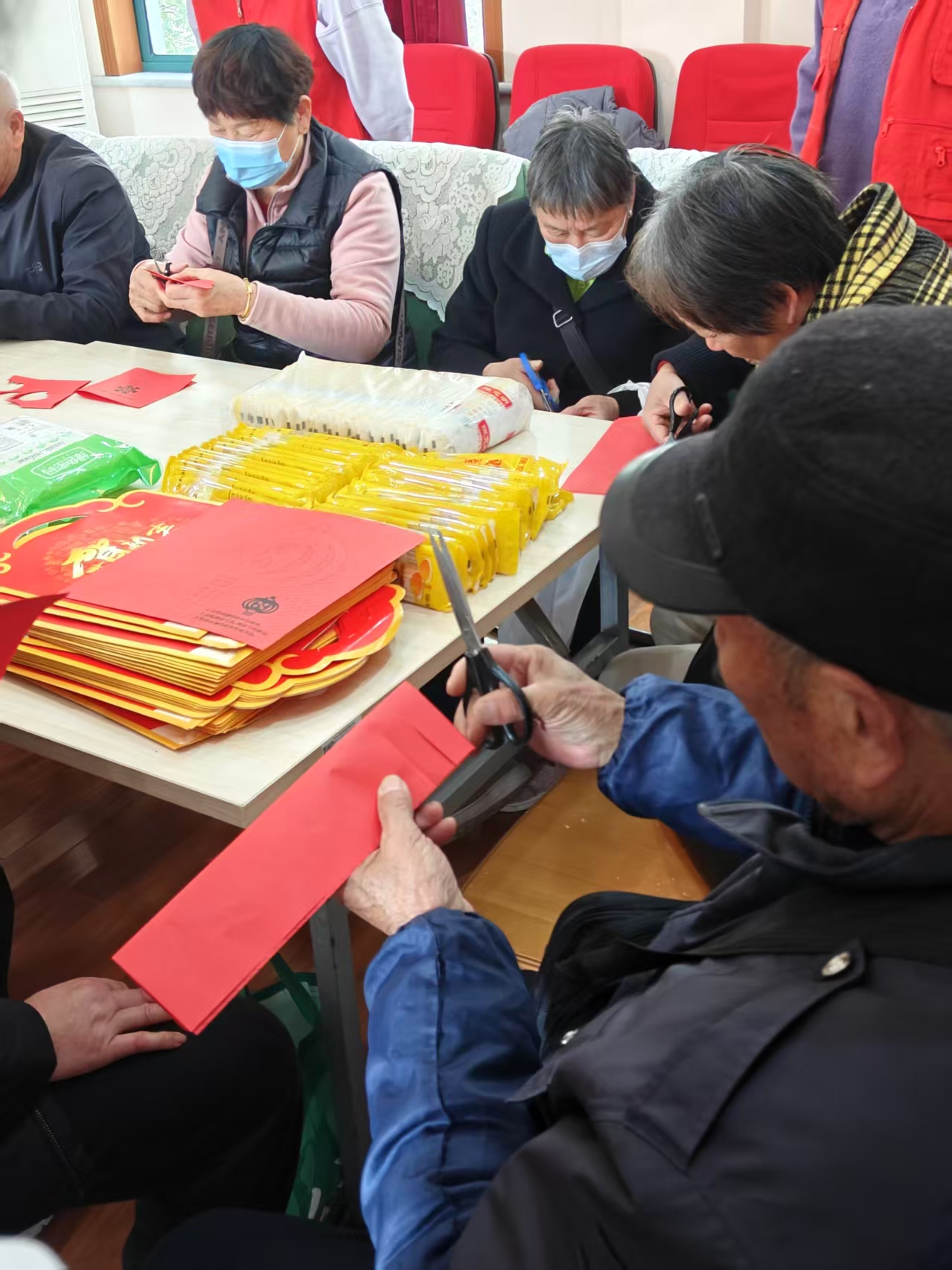 活动尾声,“福剪春风·巧手传春”环节温情上演。志愿者协助家属执剪裁红,纸屑纷飞间,一幅幅寓意吉祥的窗花跃然指尖。医护人员与志愿者共同送上春联、挂面,祈愿新年顺遂安康。镜头定格下全家福般的笑脸,将此刻温馨永久珍藏。