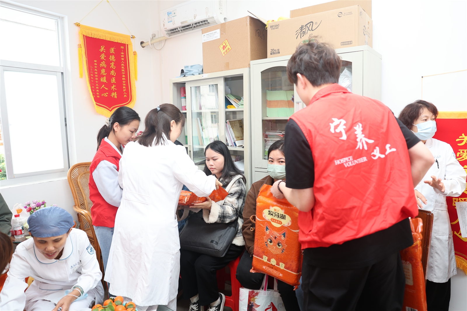 最后的活动内容为宁养院工作人员为每位患者家属送上新春慰问礼包与节日祝福。一句句祝福温暖人心,一声声问候饱含深情,宁养人用细致服务传递“人间有情”的宁养理念,让年味与关怀充盈心间。参与家属纷纷表示,活动不仅带来节日的温暖,更让大家感受到自己获理解与支撑,这份温情将成为新春里最坚实的力量。