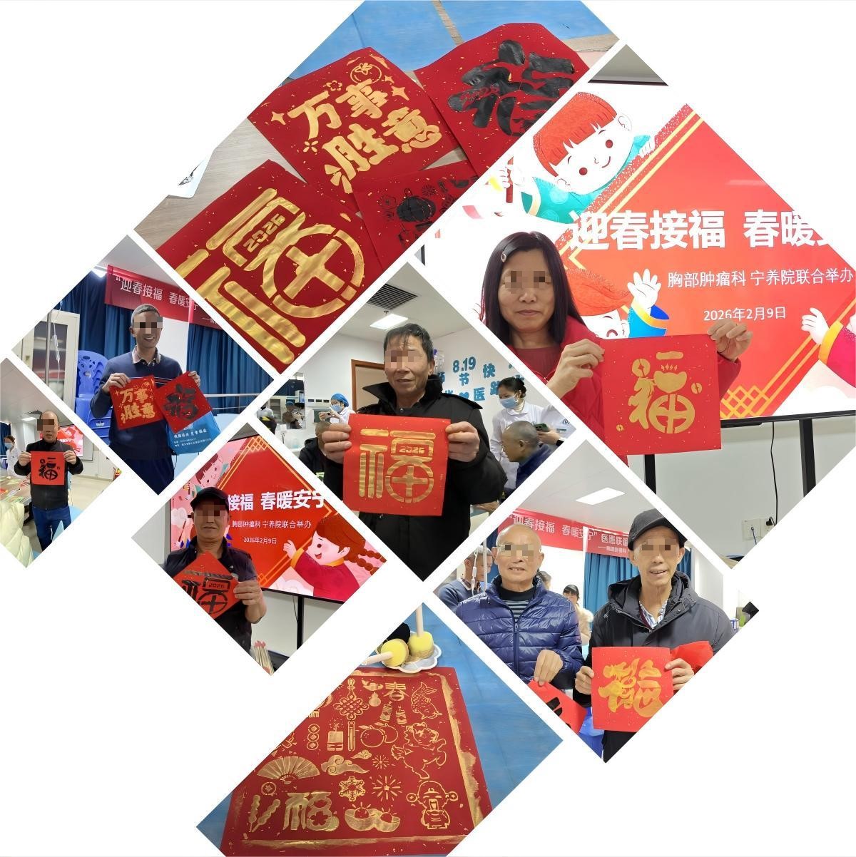 在这里,疾病不再是唯一的话题,鼓励与赞美在金色的“福”字间流转。大家全情投入,专注于当下的创作,暂时忘却了病痛的困扰。
