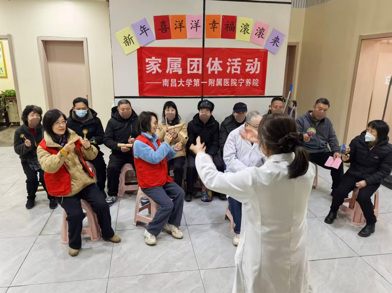 2026年2月12日,南昌宁养院候诊大厅内暖意融融,一场主题为“新年喜洋洋·幸福滚滚来”的迎新春家属团体活动在此温馨启幕。活动旨在通过轻松愉悦的互动形式,为长期陪伴患者的家属们舒缓压力、传递温暖,让大家在浓浓的年味中感受新春的喜悦与关怀。