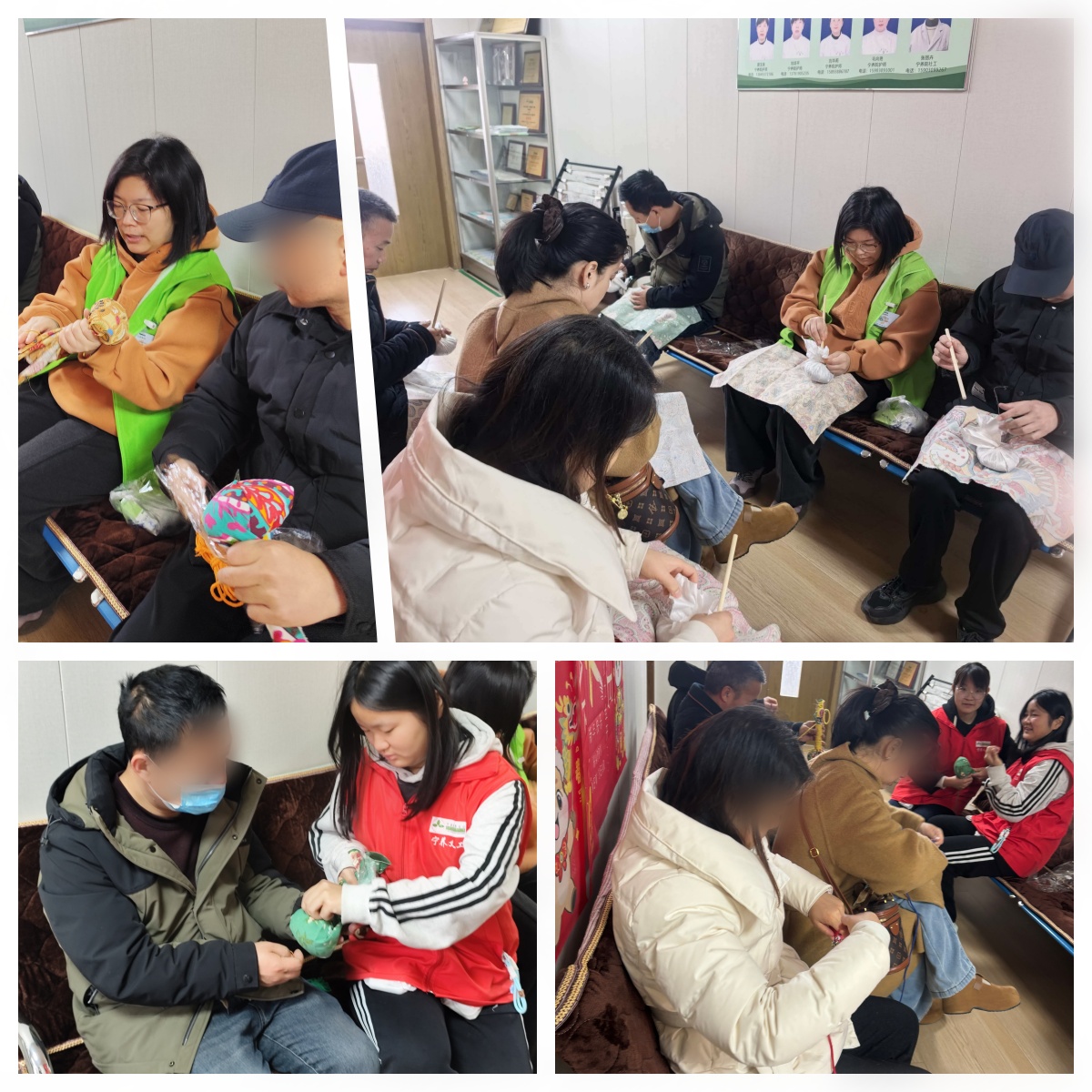 活动伊始,原本的号码牌互动破冰环节更换为艾锤手工制作,成为本次活动的暖心亮点。制作艾锤的过程中,长长的棉线需要家属们耐心环绕、用力拉紧,这一简单的动作成为家属释放压力的出口。大家专注地穿线、缠绕、拉紧,将照护患者过程中的疲惫、焦虑与压力融入每一个动作中,在动手实践的静谧时光里,让紧绷的情绪得到舒缓,彼此间也在轻声交流制作技巧中拉近距离,营造出温暖平和的氛围。
