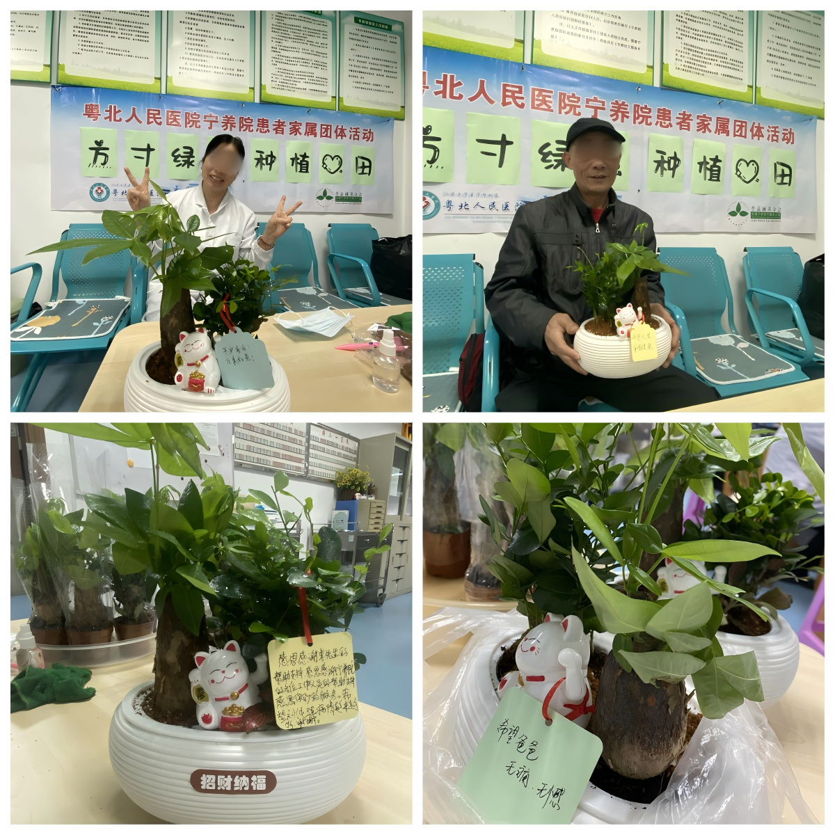 这些在不同时刻自然流露的感动,让每一位参与的家属都倍感温暖。在各自完成盆栽后,大家郑重地拿起笔,在寄语卡的背面工工整整地写下“平安常在”、“无痛无憾”......