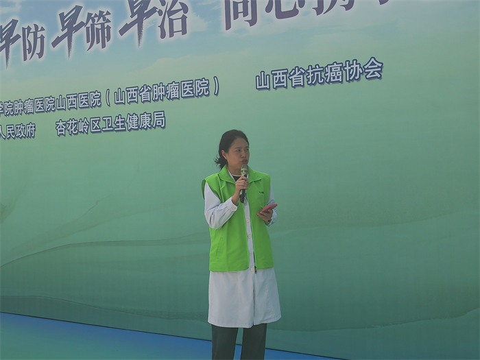 活动同步举办五大主题健康科普讲座,由中国医学科学院肿瘤医院山西医院(山西省肿瘤医院)各科室骨干专家主讲,内容紧贴群众需求、语言通俗易懂,全面覆盖肿瘤“防、筛、诊、治、康、管”全流程。肿瘤防控办刘妍带来《肿瘤病因预防的重要性》主题科普,聚焦肿瘤源头预防核心要点;肿瘤体检中心朱宝艳以《肿瘤健康体检:要防癌 去体检》为题,细致普及癌症早筛相关知识;胸外科郑康深度解读《肺结节的防治指南》,明晰肺结节规范诊疗与管理路径;宁养院刘冰新带来《携手抗癌,温暖同行——老百姓也能听懂的“康复”和“缓和医疗”》科普分享,传递科学康复与人文关怀理念;医务科程雪梅讲解《癌症全流程管理》,提高公众树立科学防癌控癌意识。
