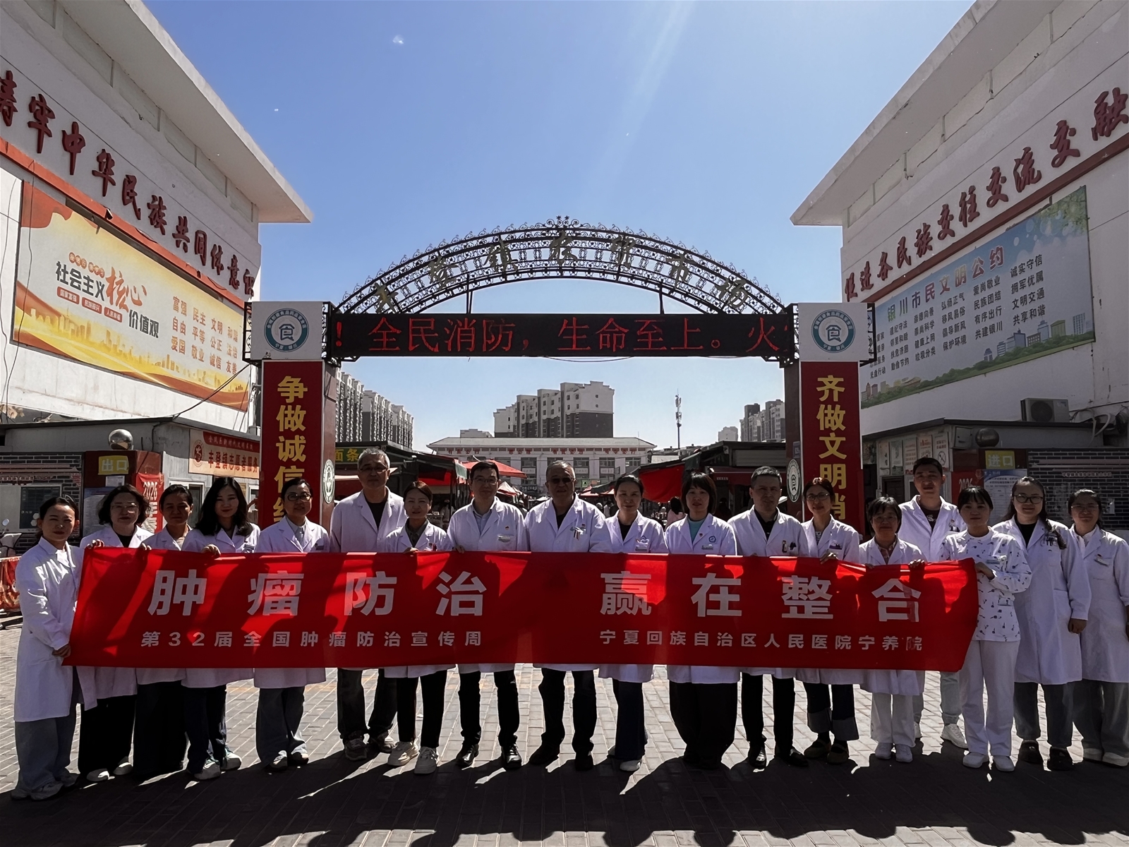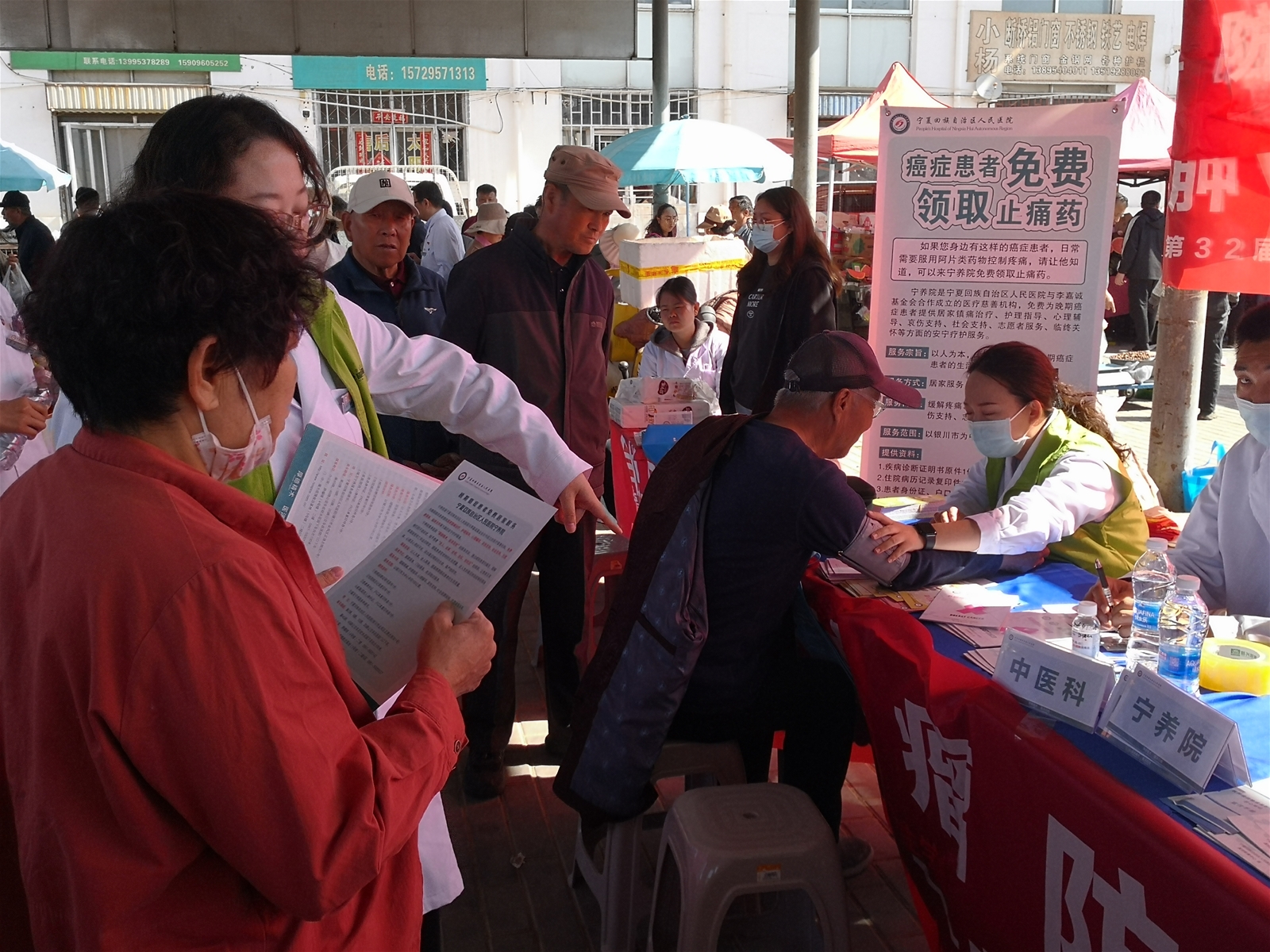 在第32届全国肿瘤防治宣传周(2026年4月15日—21日)期间,为深入贯彻国家肿瘤防治相关工作要求,切实破解乡村居民肿瘤防治知识匮乏、就医不便、肿瘤患者心理疏导缺失、疼痛管理不规范等基层痛点,宁夏回族自治区人民医院宁养院特牵头,联合医院肿瘤内科、中医科、放疗科、消化内科、血液内科、内分泌科等多学科医护人员,于2026年4月17日,在银川市金凤区丰登镇开展“肿瘤防治 赢在整合——宁养护航送医下乡,多科联动守护乡村群众健康”主题义诊宣传活动,以“宁养护航+多科联动”为特色,将专业医疗服务与宁养人文关怀深度融合,让宁养温情走进乡村、惠及百姓。