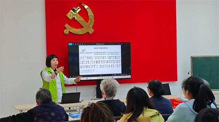 紧接着,宁养院社工侯蓉以一首激昂的《没有共产党就没有新中国》暖场,搭配趣味防跌倒测试互动,瞬间点燃现场氛围,居民们踊跃参与,现场气氛轻松又热烈。借着高涨的参与热情,侯老师细致讲解中老年人日常防跌倒知识,梳理生活中易引发跌倒的风险细节,教授实用防护技巧,帮助居民有效降低跌倒损伤风险,切实提升自我保护能力。