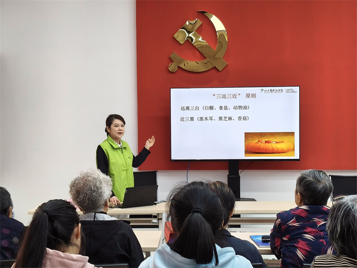 活动最后,泌尿科护士长杨振亚围绕“合理膳食、预防慢病”展开科普,事无巨细地讲解日常饮食营养搭配、健康食材选择、有害饮食规避等知识,针对性指导居民根据自身体质科学饮食,用健康饮食筑牢疾病预防根基。实用的膳食建议让居民们受益匪浅,纷纷拿出手机记录科普要点。