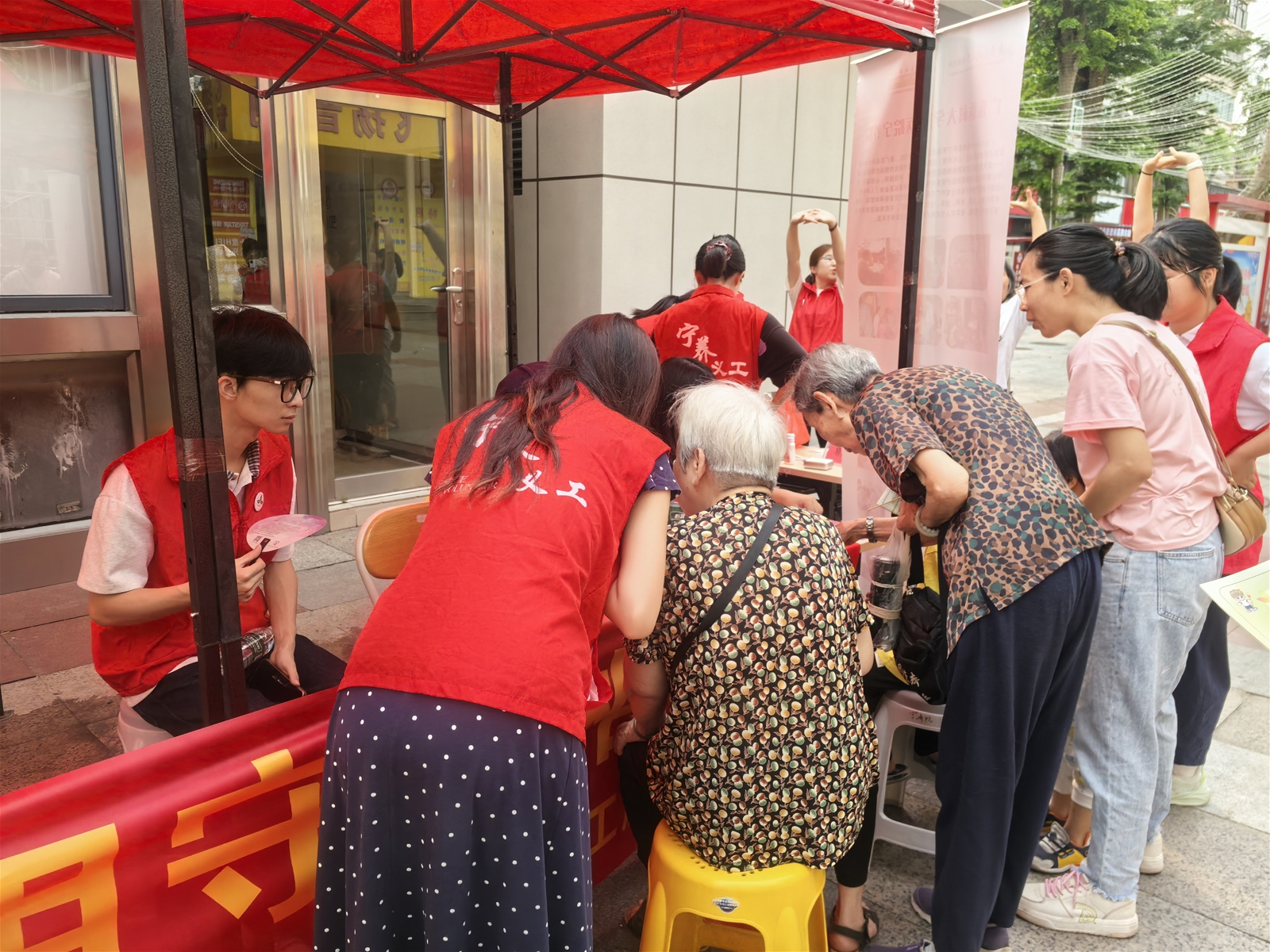 4月19日上午,宁养院联合义工服务队走进霞山步行街,开展趣味科普活动。现场划分健康咨询、游戏互动、防癌展板、八段锦健身操等区域,吸引众多市民驻足。医护人员为市民免费监测血压、血糖,用通俗语言讲解肿瘤防治知识,叮嘱养成健康生活习惯,宣传宁养服务内容等。义工们带领市民练习八段锦,传递“运动抗癌”理念。市民踊跃参与知识问答、“风险配对”游戏,在轻松氛围中了解宁养服务,掌握防癌知识,凭活动印章兑换礼品,实现“在互动中学习,在参与中收获”。