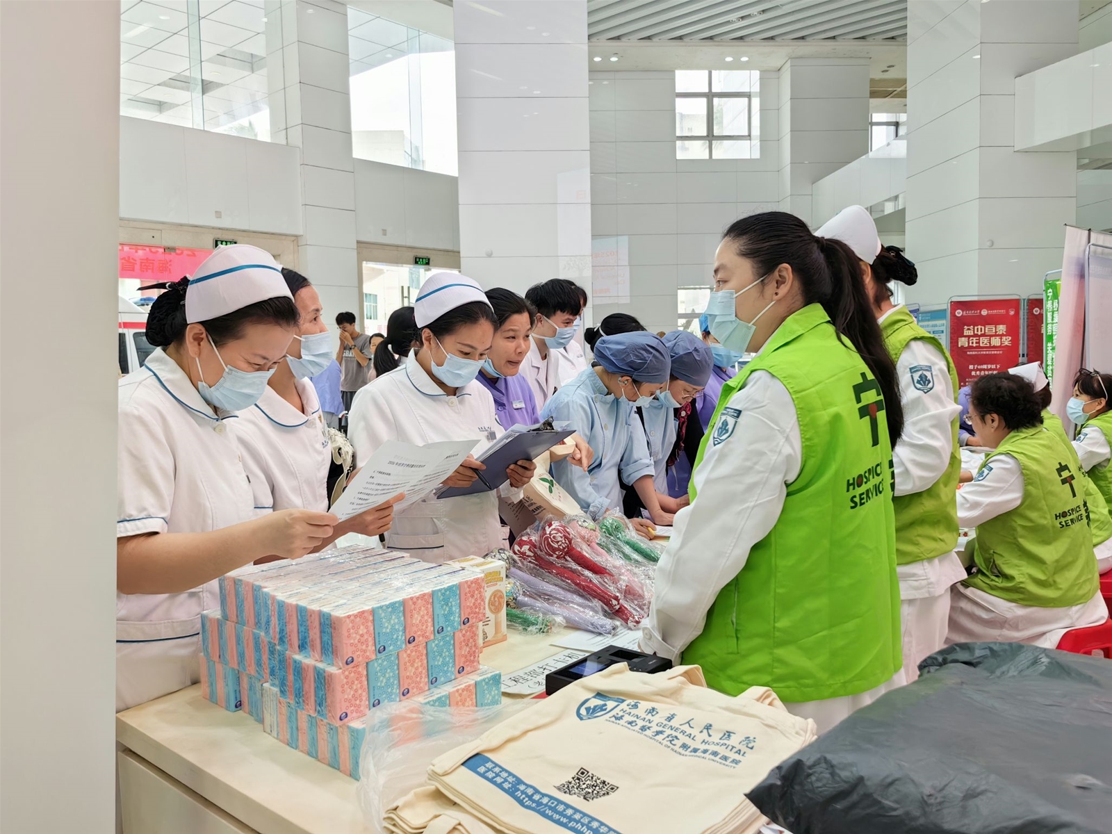 二、10 月 22 日上午,海南省人民医院外科楼大厅内温情涌动,一场以 “实现承诺,全民享有” 为主题的世界纾缓宁养日有奖问答活动顺利开展。活动以互动科普为核心,打破公众对安宁缓和医疗的认知壁垒,向患者、家属及院内职工传递生命关怀的温度,吸引院内医务人员、患者及家属百余人积极参与。参与者或独立思考,或轻声探讨,答题正确者可获得宁养院医护人员发放的贴心小礼品,现场氛围热烈而温馨。宁养院医护团队同步提供一对一咨询服务,针对长期疼痛管理、营养支持等问题给出个体化建议,详细介绍我院 “症状干预 + 心理支持 + 家属辅导” 的全流程宁养服务模式。也涵盖 “宁养服务申请流程”“家属哀伤辅导技巧” 等实用内容,部分宣教融入 “四道人生”(道歉、道谢、道爱、道别)等人文理念。义工们则为前来参加活动的人介绍本次活动和引导现场秩序。现场来了好几位咨询宁养服务的住院患者及家属,其中,有一位老太太真挚的感谢让人影响深刻,她伸出满是针孔的手背说:“我就是恶性晚期肿瘤的患者,还真不知道有这样的一个慈善机构呢,你们的存在让我们多了一份依靠与感动,非常的感谢李嘉诚基金会和海南省人民医院的大爱与善举,让民众得以享有生命最后一程的体面与尊严”。老太太的有感而发正好体现了本次宣传活动的意义。同时,现场也来了好多院内年轻的医务工作者,宁养院的医护人员耐心地为他们介绍着宁养院的服务流程和内容讲解,她们纷纷表示,这是一个多么有爱的部门啊!以后我们也会推荐更多有需要的患者来享有这份爱的守护。