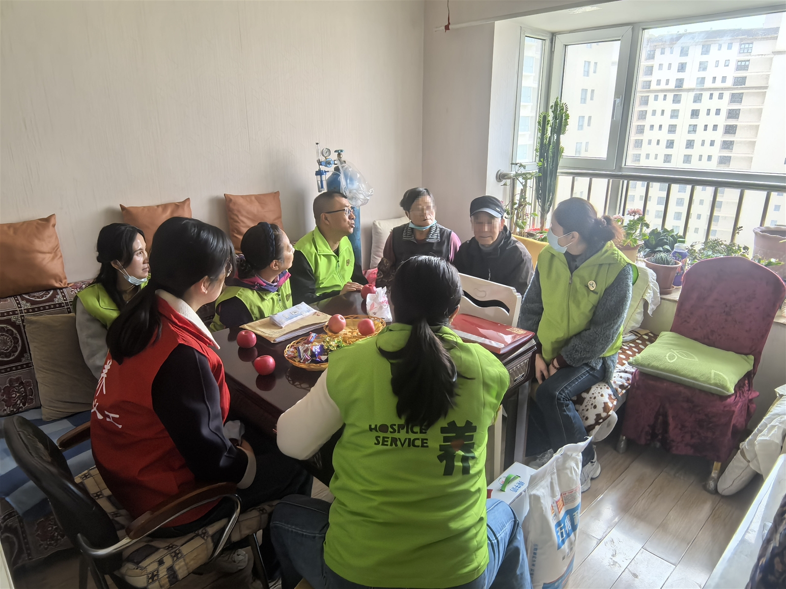 在详细评估宋女士的病情后,医护人员发现她除了要忍受病痛折磨,更承受着对儿子的深深愧疚。宁养团队围坐在患者、儿子、儿媳身边,耐心倾听他们的心声。在真诚的交流中,宋女士吐露了内心的忧虑:"我拖累了孩子啊!"患者儿子:"妈,您别这么说,有您在,这个家才完整。"儿子的回应让在场所有人动容。工作人员通过专业沟通,帮助宋女士认识到亲情的无价,同时积极为这个家庭提供义工服务。