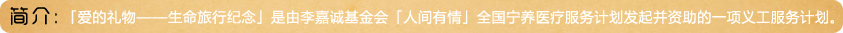 ·「爱的礼物——生命旅行纪念」义工服务计划第五期作品评选结果揭晓,点击查看>>