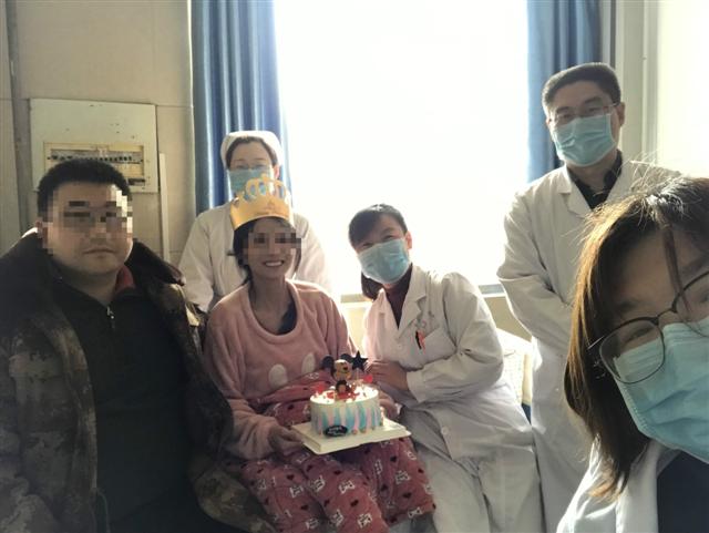 在下午3.00我们相约来到小群儿的房间,她的丈夫早早的到门口迎接我们。当进到屋里的时候小群儿看到我们端着蛋糕进来,流着眼泪告诉我们:即将来医院的时候,自己的女儿还提醒爸爸要给妈妈准备蛋糕,一定不能让妈妈过生日没有蛋糕吃!本来想着这个生日应该不会有蛋糕了,因为街上的蛋糕店都关门了,没有想到宁养院的工作人员却给自己准备了这么大的惊喜!随后宁养院工作人员一起和小群儿唱起了生日快乐歌,当小群儿许愿的时候,她说到自己想把这个愿望和大家分享:“自己希望明年还能和大家一起:过生日!”这个愿望对我们正常人来说是再正常不过了,在小群儿的心里却是那么的奢侈!