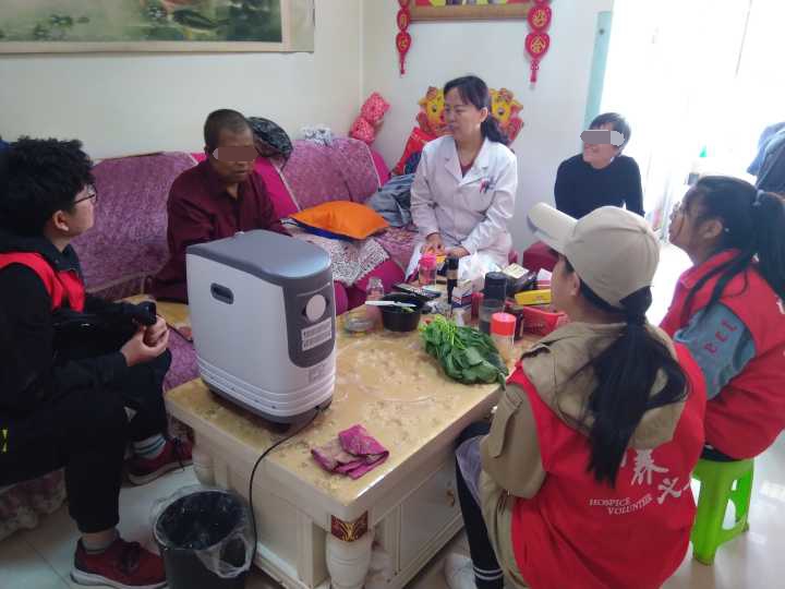 在这一天,我们家访了5个患者。其中,我的案主是一位62岁的叔叔,他给我的印象特别深刻。身患肺癌,却有着不凡的精神,坚强、乐观的面对疼痛与病魔。他说,生老病死就是自然规律,这是不能改变的事实,以“顺其自然”的心态生活。家里不太宽阔,却每个角落里充溢着温馨和舒适。老伴对叔叔无微不至的照顾着,每天换着样子给叔叔做好吃的。听叔叔说,女儿给自己买了轮椅和吸氧机。这次家访虽未见到叔叔的女儿,但我想,她一定是一个善良乖巧懂事孝顺的姑娘。叔叔家里有两只宠物狗,其中一只已经4岁了,在叔叔行动不便的时候陪伴着叔叔,使叔叔的失落和孤独有了栖息地和慰籍。通过交流,我们还了解到叔叔曾有8年学医的经历。谈起这个来,叔叔的脸上似乎焕发着荣光。这段经历,应该是叔叔的骄傲吧!他对我们说,年轻人,就应该跟随一个好老师刻苦专研,学习知识提升自己!叔叔身上,有着满满的正能量!