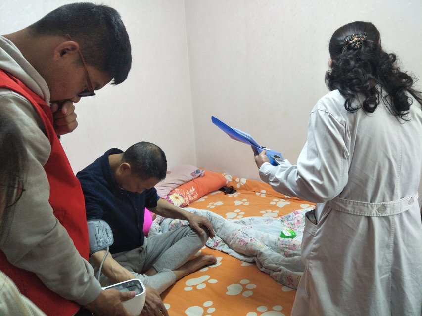 今天跟随宁养院社工辛老师家访了八个家庭。八个在痛苦中奋力挣扎的家庭。有的家庭气氛凝重,有的家庭气氛森严,有的家庭气氛疲惫中渗透着些许的乐观。我不知道他们经历了什么,我也未曾和他们感受那份痛苦,但当我看到他们的时候,无一不感到心疼。心疼他们做错了什么,竟要遭受这份折磨。印象深刻的是一个特别漂亮老奶奶。今年八十八岁,身患乳腺癌。奶奶身上有多种疾病,还有一定程度的老年痴呆。可我在她身上看到的更多的是乐观。在我们帮她量血压扶她起来帮她躺下的时候,可以轻轻地听到她说“谢谢”。可以感受到她对我们的到来感到的惊喜与快乐,即使身体很虚弱,仍然给我们看自己可以运动。奶奶的家人特别的负责任,在交谈之中可以感到家人对奶奶的爱惜。很开心可以看到这样的家庭。愿世间的家庭都是如此。
