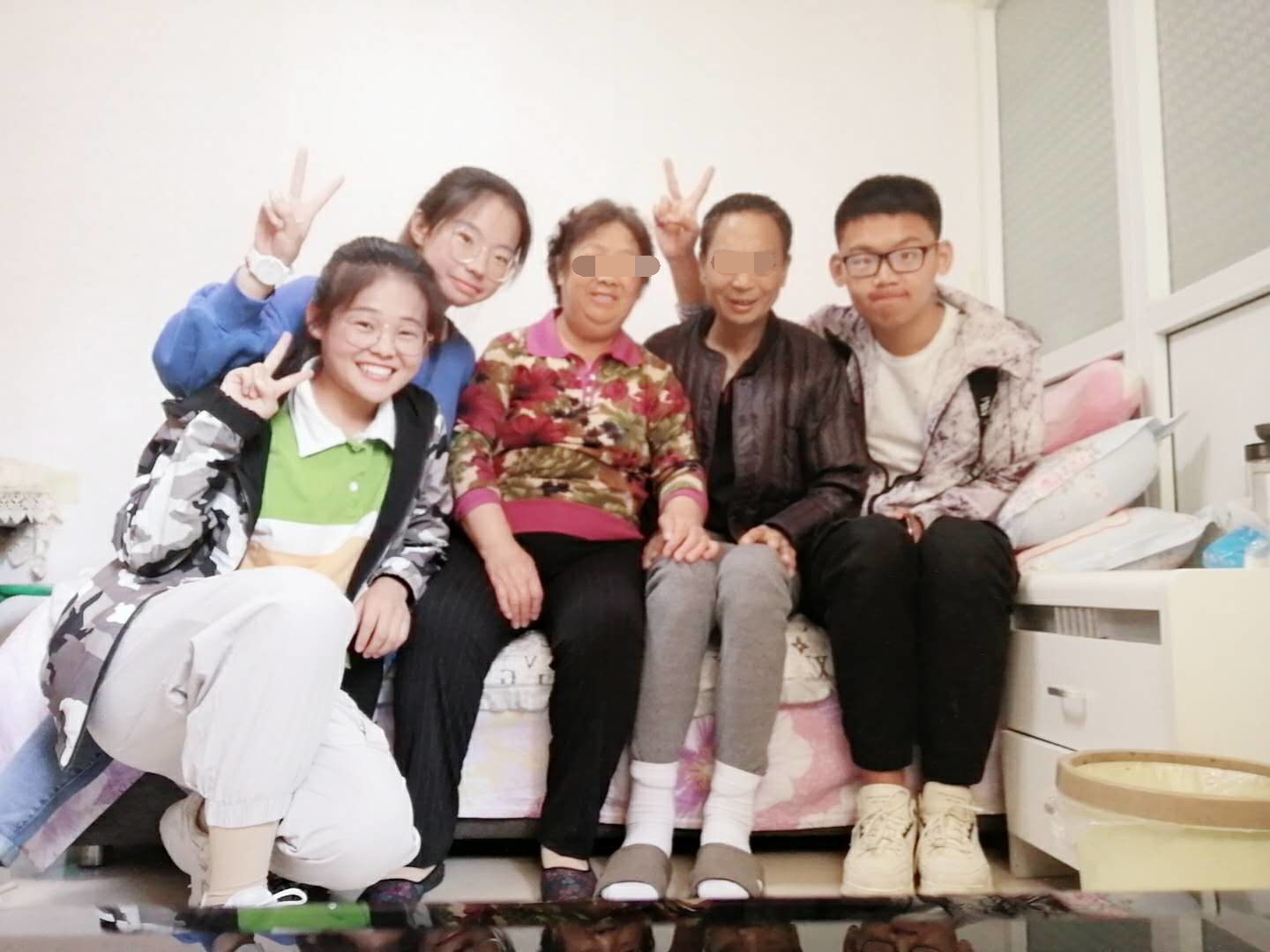 作者 (右一) 和小伙伴们在家访结束和叔叔阿姨合影