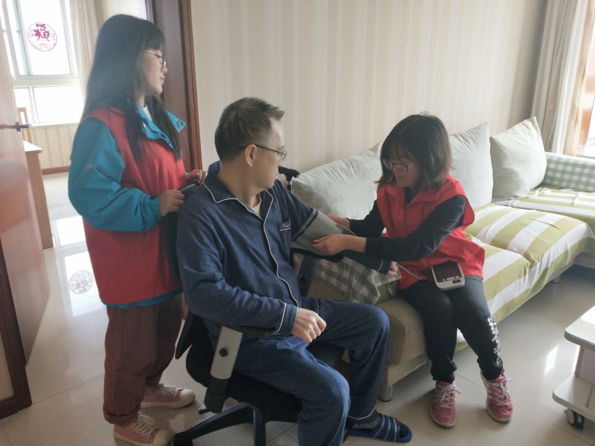义工作者为患者测量血压