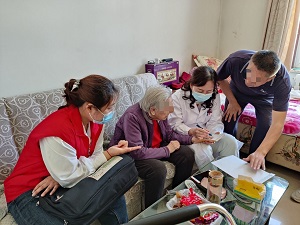 宁养院辛老师帮助患者调整服药时间 (笔者,左一)