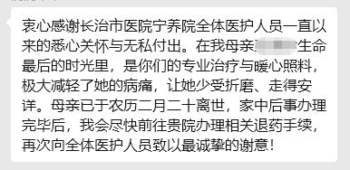 未来的日子里,这份“有情有爱”的羁绊仍会延续。长治宁养院会继续带着专业与温度,守好生命最后的驿站,也会珍惜每一份来自家属的认可与反馈。愿这份温暖能传递给更多人,让更多人知晓安宁疗护的意义,让每一段生命的归途,都能被温柔以待。