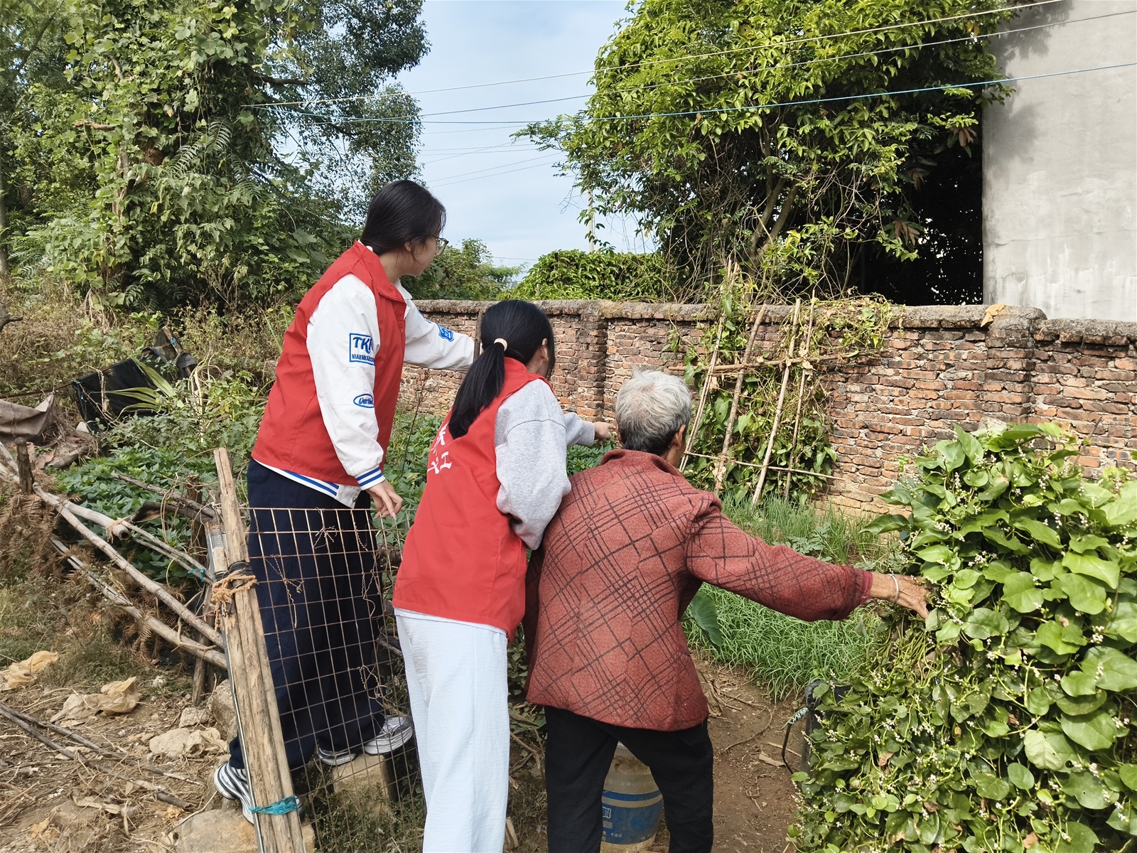 义工陪伴黄奶奶来到她曾经劳作的菜地,重温过往时光