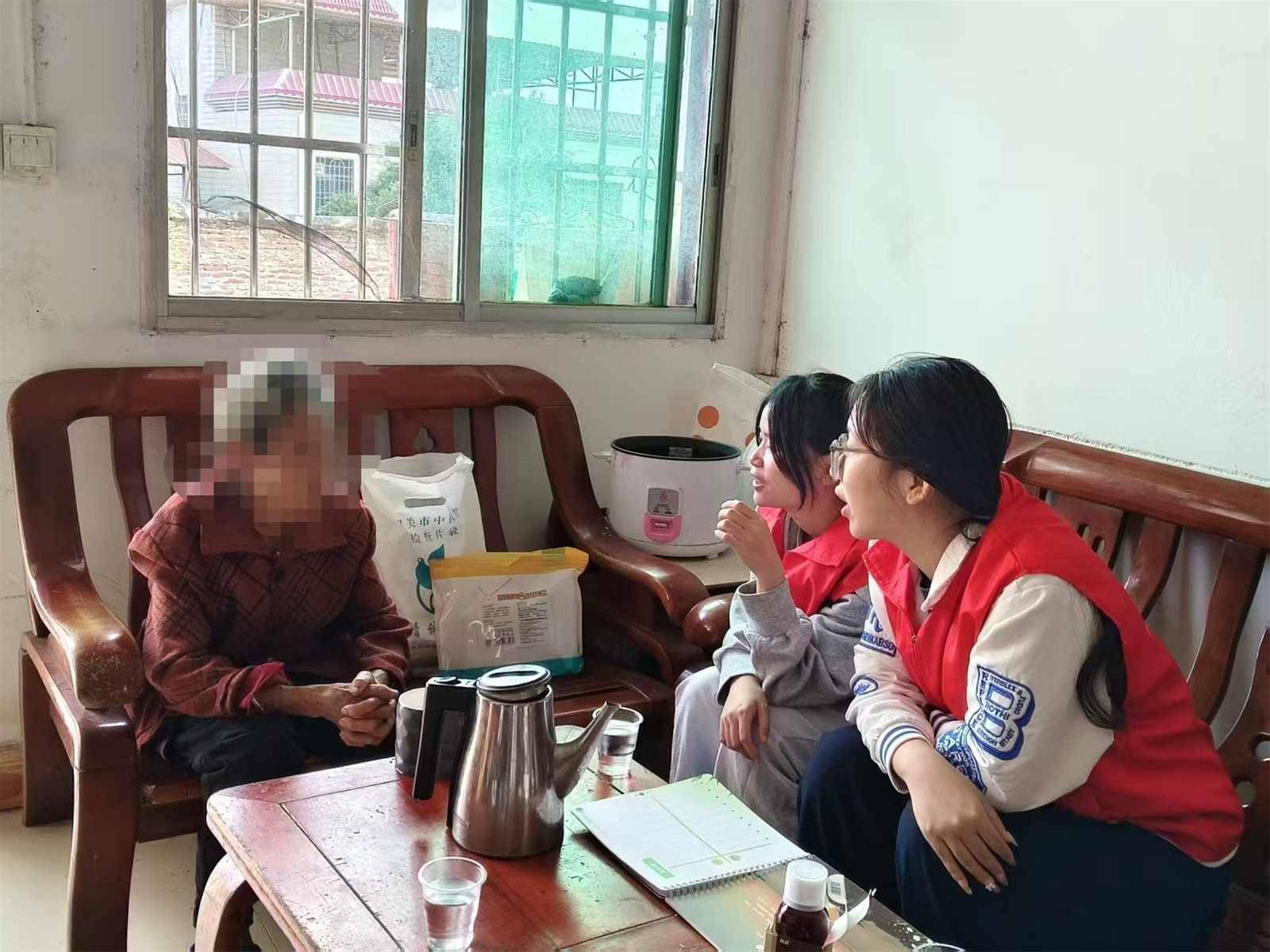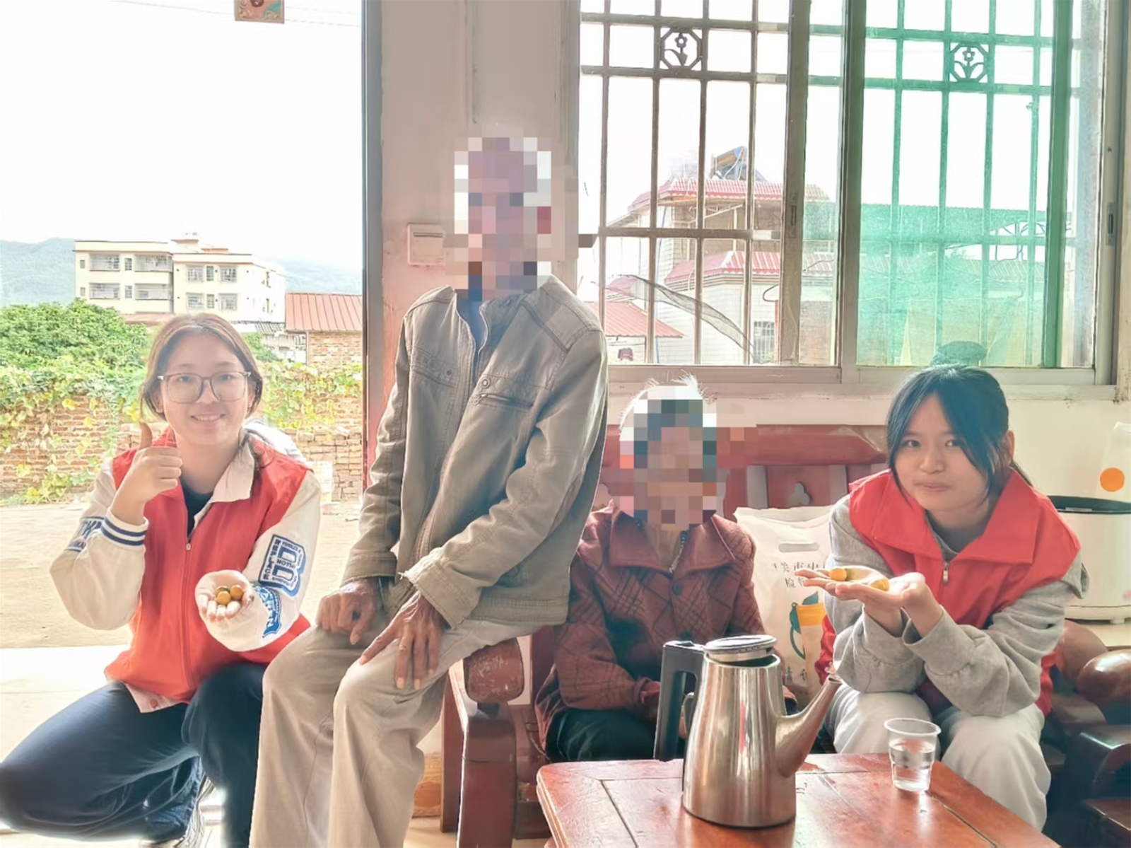 在服务的过程中,我也体验到了很多爱。在婆婆忘记时,爷爷会在旁边提醒她、给她倒水喝的爱;家里人始终陪伴在婆婆身边,关心婆婆的爱;还有婆婆对我们义工的爱,婆婆每次都会拿吃的招待我们,婆婆每次给我吃的,我都很感动。每每此时,我总能想到我的奶奶,我奶奶每次也会把好吃的都留给我。或许在老人家的想法里,她们表达喜爱的方式就是给你吃很多好吃的。