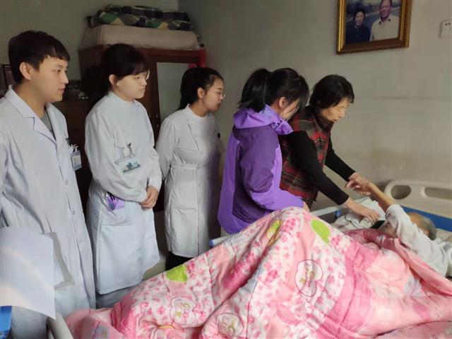 笔者 (左二) 在宁养院实习期间居家探访患者