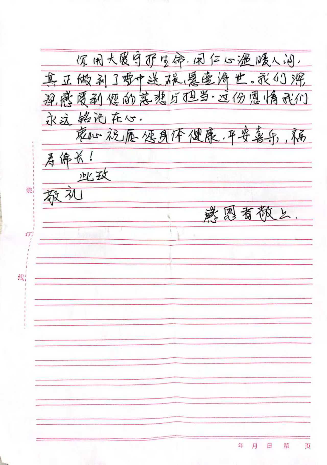 患者家庭感谢信原件