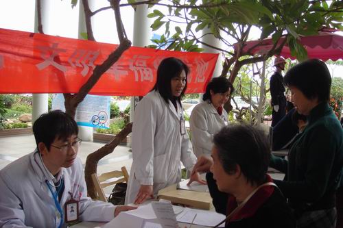 为迎接第100个“三·八”妇女节的到来及庆祝广西医科大学第一附属医院(西院)开业7周年,2010年3月7日上午,广西宁养院与妇产科、儿科、社区卫生服务中心等科室的30多名医护人员一起,到南宁市高新工业园盛天尚都小区开展社区义诊宣传活动。