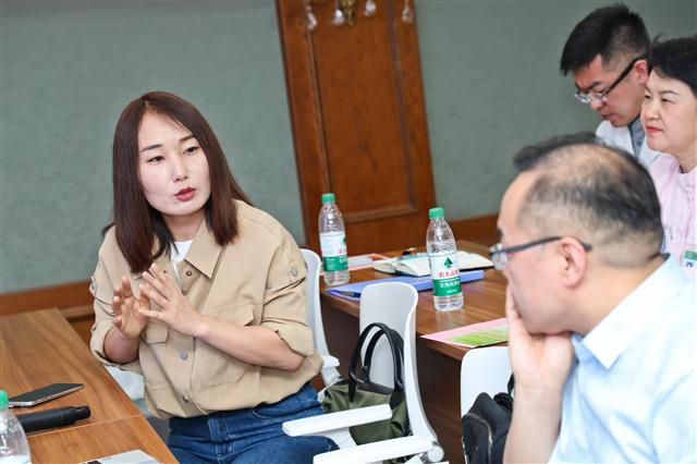 陕西中医药大学侯滢老师(左一)就志愿者在志愿活动的开展向路桂军教授提问